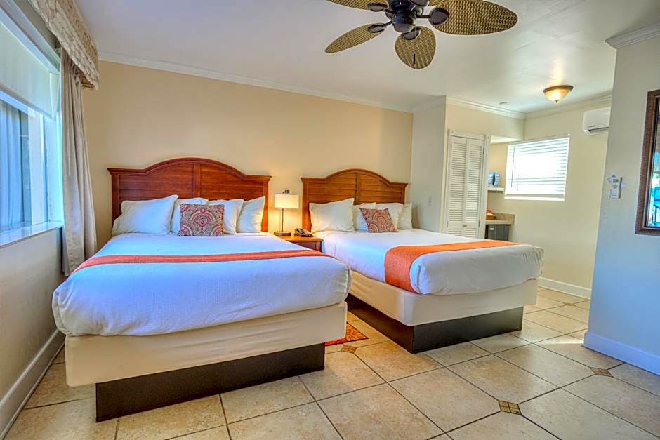 This two-level townhouse suite includes a living room with queen/twin sofa bed, an 8-foot, granite wet bar, and a balcony. A microwave, refrigerator, and coffee maker are provided. The second level features a private king bedroom that includes a spa bath and fireplace.